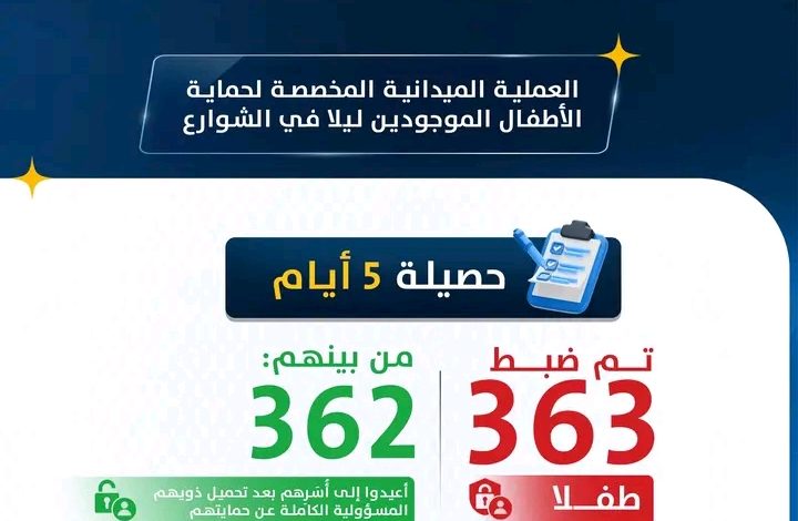 وأفادت الوزارة عبر حسابها الرسمي بأنها قامت بتسليم 362 طفلاً إلى عائلاتهم، مع التأكيد على ضرورة التزام الأهالي بمسؤولياتهم القانونية والتربوية في رعاية أبنائهم ومتابعتهم بشكل دقيق لتفادي تواجدهم في وضعيات خطرة.