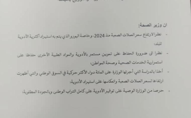 وبموجب تعميم رسمي أصدره وزير الصحة بتاريخ 2 فبراير 2026، تم إلزام الإدارة العامة لشركة كاميك وكافة مؤسسات الاستيراد والتوزيع بتثبيت سعر الصرف عند 467 أوقية قديمة لليورو الواحد كمعيار لتحويل سعر البيع بالجملة، بعيداً عن تقلبات السوق السوداء أو المضاربات المالية.